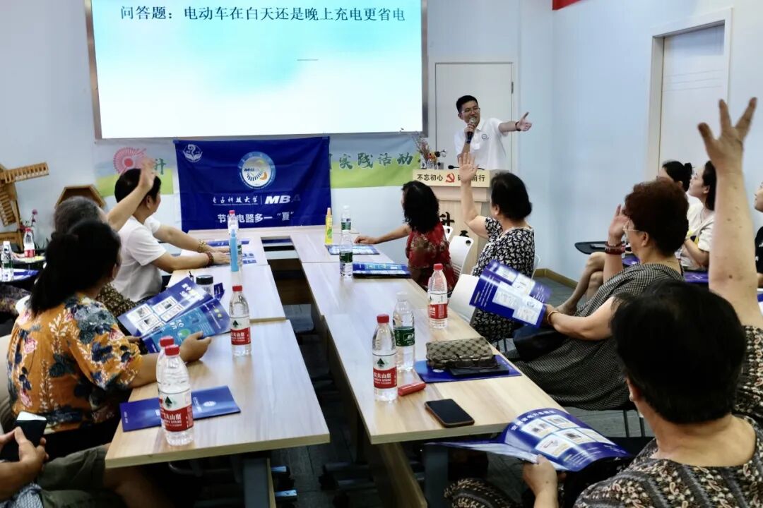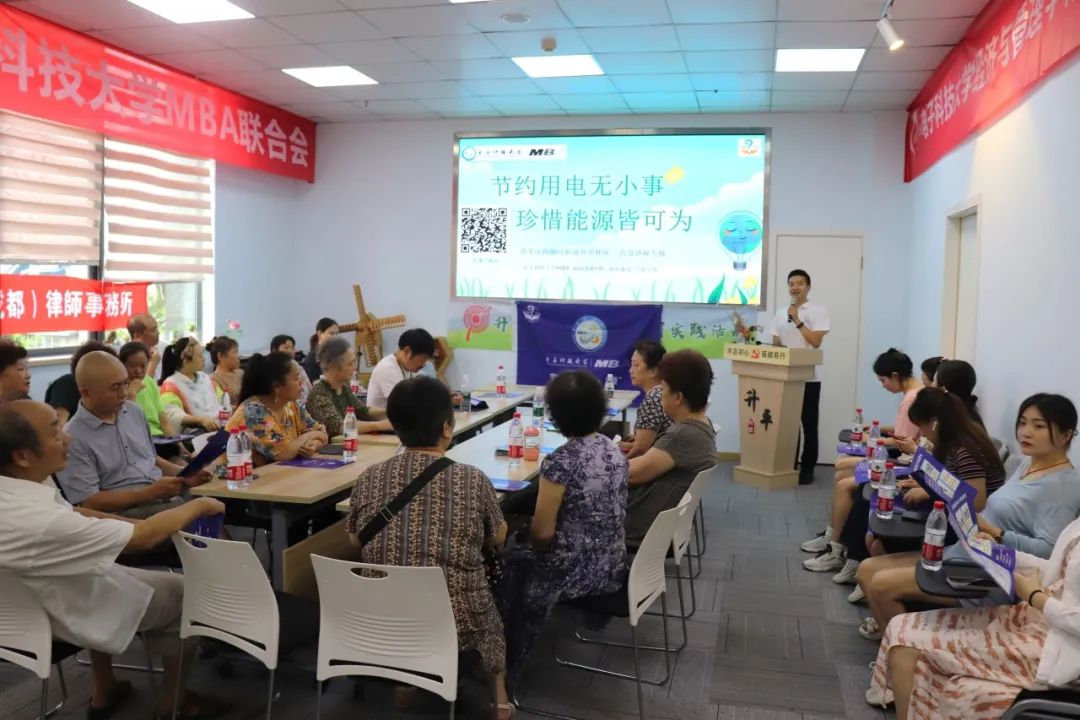 為響應(yīng)國家節(jié)能減排、綠色低碳的號(hào)召,2023年8月4日,電子科技大學(xué)MBA“玖玖如意”公益小組在電子科技大學(xué)經(jīng)濟(jì)與管理學(xué)院MBA黨支部和電子科技大學(xué)MBA聯(lián)合會(huì)的指導(dǎo)下,聯(lián)合都市青羊區(qū)升平社區(qū)居民委員會(huì)、中國農(nóng)業(yè)銀行成都新都支行、北京東衛(wèi)(成都)律師事務(wù)所和簡捷醫(yī)生社區(qū)診所,走進(jìn)成都市青羊區(qū)西御河街道升平小區(qū),開展“節(jié)能電器多一‘夏’”活動(dòng)。