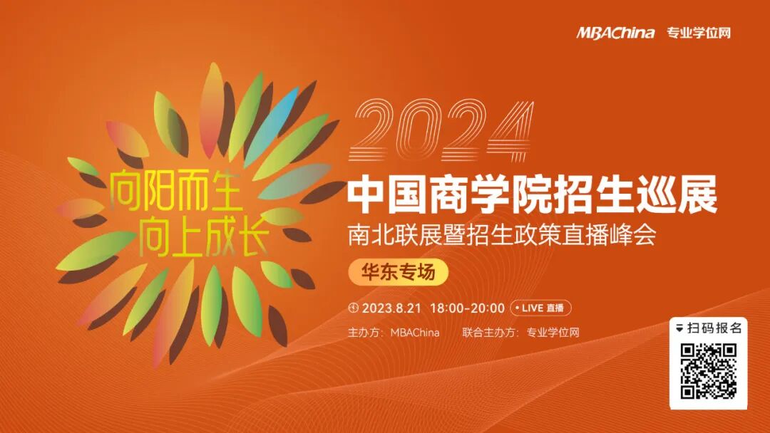 8月21日華東專場以“線上直播”形式進(jìn)行,屆時(shí)浙江大學(xué)MBA教育中心副主任唐曉莉老師將全面解讀考生關(guān)切的中外合作辦學(xué)項(xiàng)目特色、招生政策、師資力量、申請流程等問題,并提供在線咨詢解惑服務(wù)。機(jī)會難得,歡迎廣大考生掃碼報(bào)名參加!