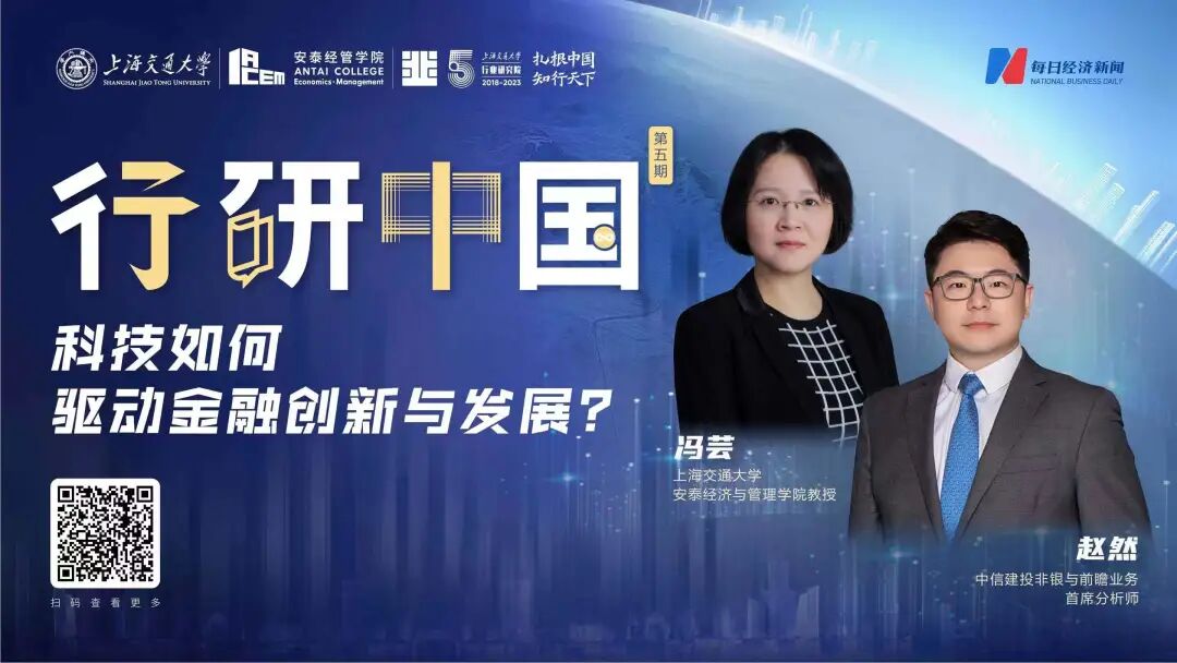 上海交通大學(xué)中銀科技金融學(xué)院副院長、上海交通大學(xué)安泰經(jīng)濟(jì)與管理學(xué)院教授、上海交通大學(xué)行業(yè)研究院金融科技行研團(tuán)隊(duì)負(fù)責(zé)人馮蕓,與中信建投非銀與前瞻業(yè)務(wù)首席分析師趙然,圍繞“當(dāng)金融與科技相向而行”這一話題進(jìn)行深入討論。