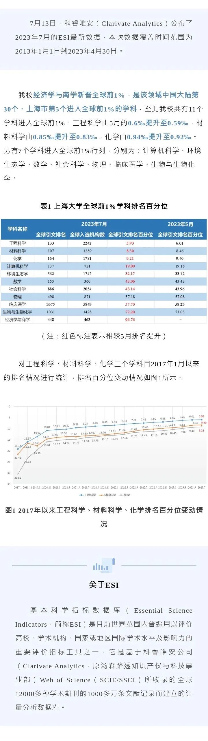 再+1,上海大學(xué)經(jīng)濟(jì)學(xué)與商學(xué)新晉ESI全球前1%!