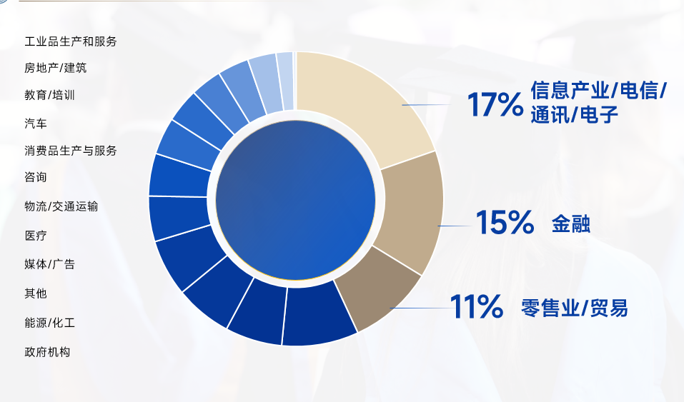 從單位所屬的行業(yè)看,來自IT行業(yè)的同學(xué)最多占比17%,其次為金融行業(yè)。工作于零售業(yè)、制造業(yè)、咨詢、教培和汽車行業(yè)的同學(xué)也為數(shù)較多。