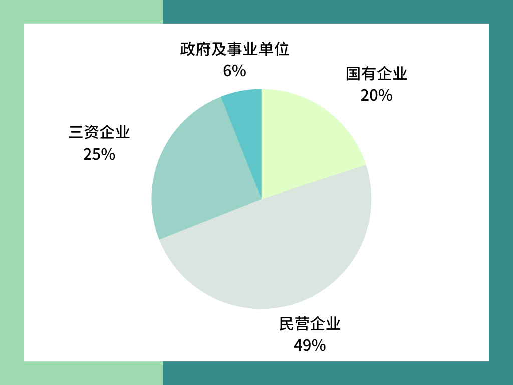 2023級新生的工作單位主要集中于大中型企業(yè),包括三資、國有與民營;也有小部分來自政府與事業(yè)單位。