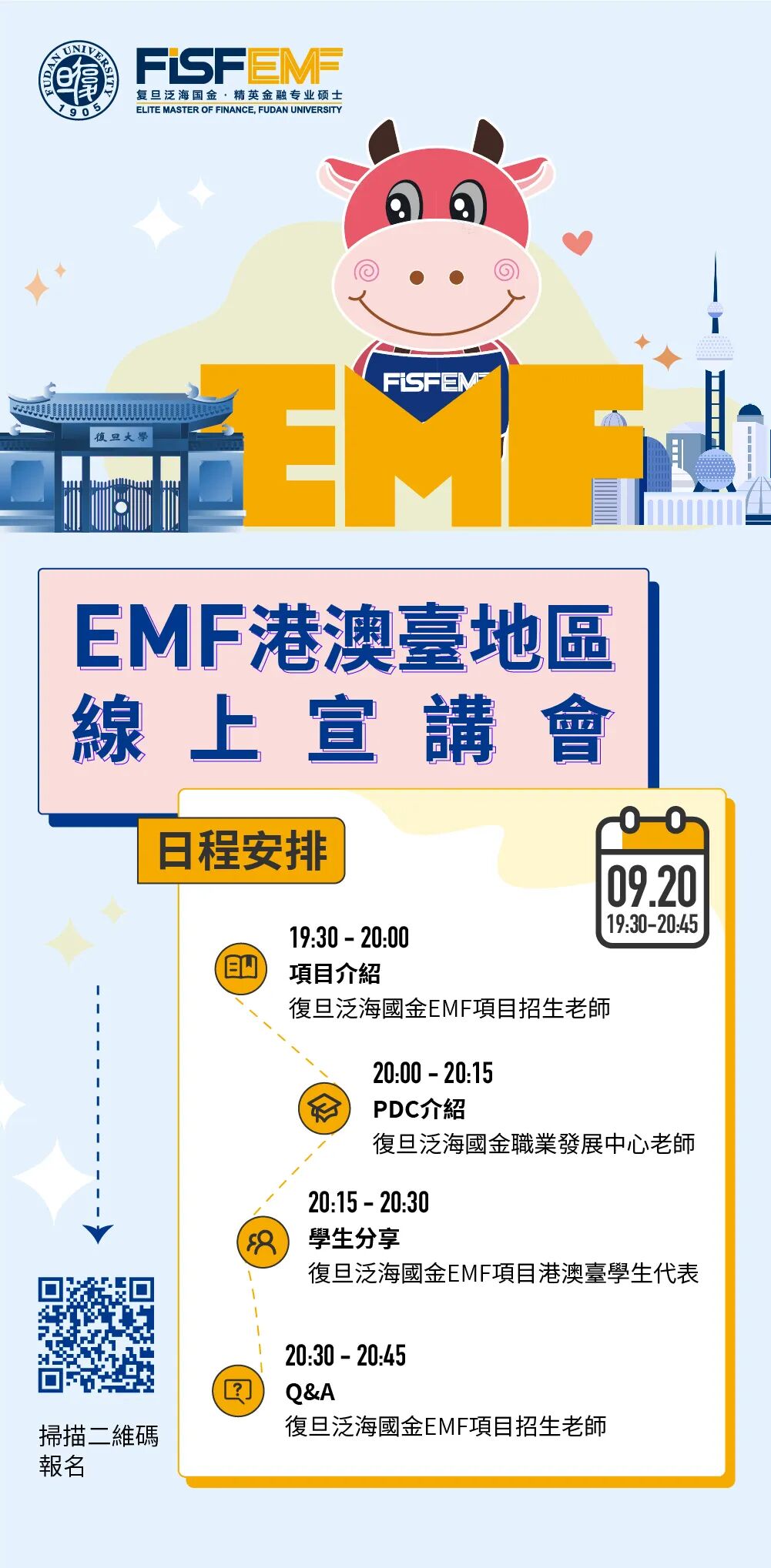 【9月20日】復(fù)旦泛海國金EMF項目港澳臺地區(qū)招生線上宣講會來啦!| EMF