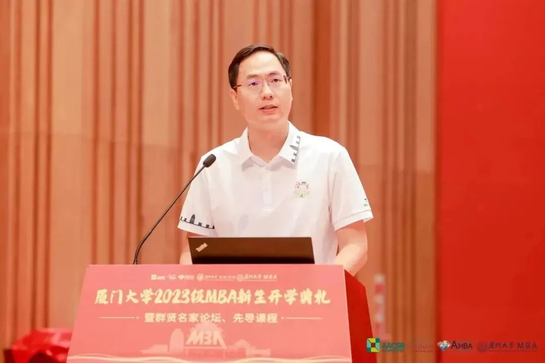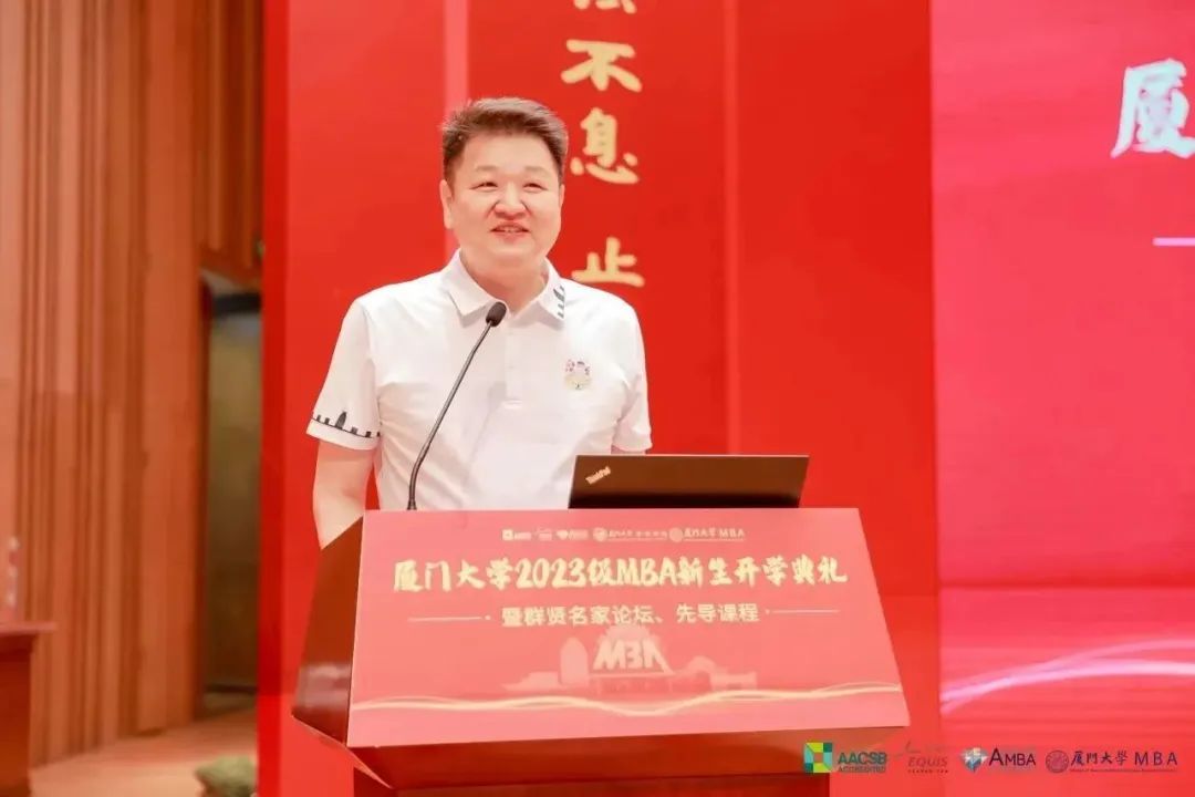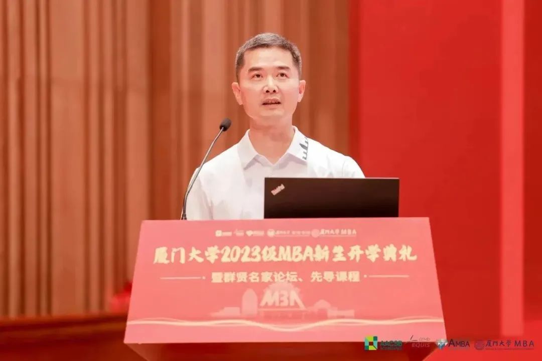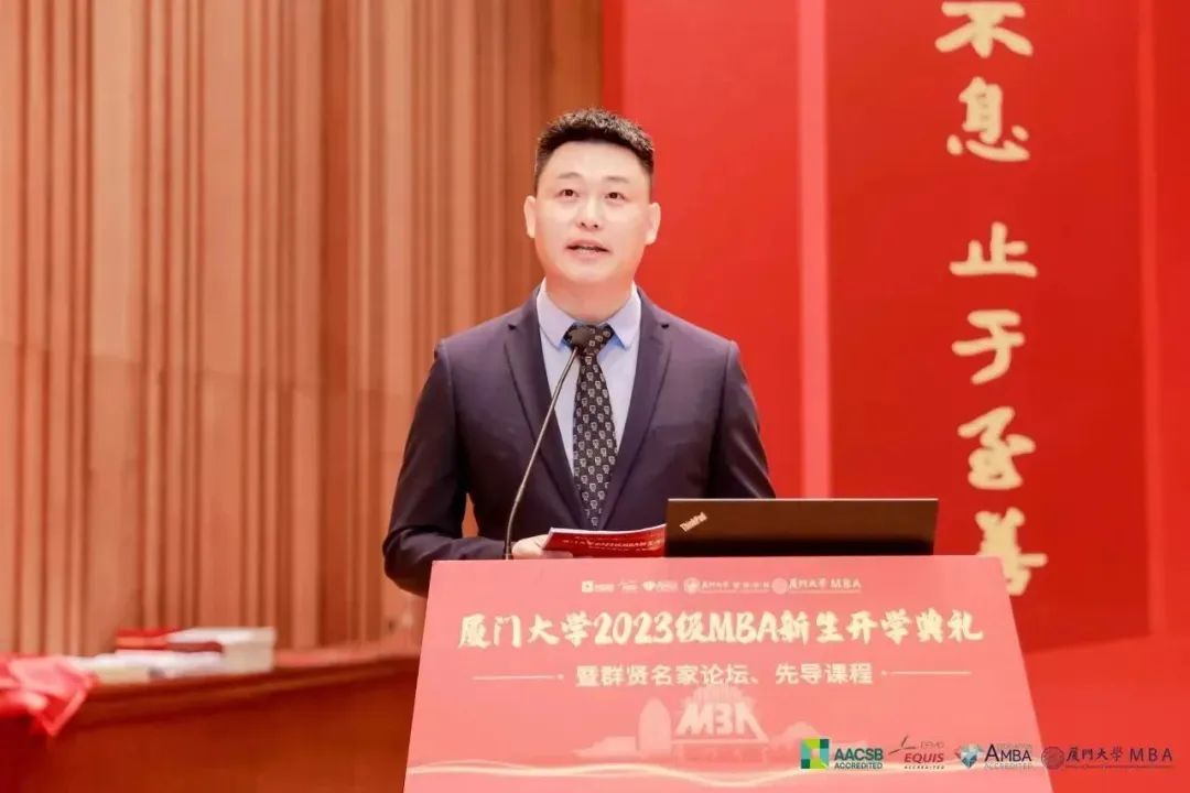 吳超鵬代表管理學(xué)院向23級新生表示歡迎。他言明廈大教育是MBA學(xué)子搏擊商海浪濤的引航羅盤,并寄語新同學(xué)厚植愛國情懷、錘煉本領(lǐng)品性,以端正心態(tài)譜寫廈大新百年的華章。