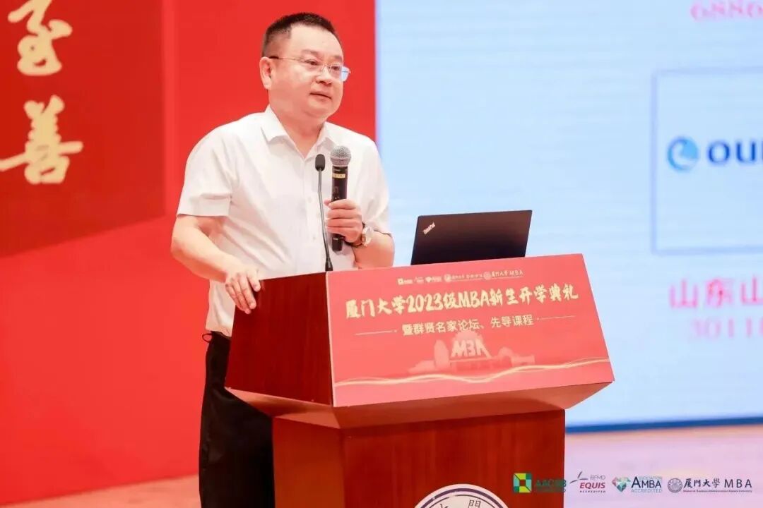 2023級新生代表、廈門萬久科技股份有限公司總經(jīng)理鄒朝圣在發(fā)言中分享自己加入廈大MBA的動因。如他所言,管理是經(jīng)營策略,創(chuàng)新是制勝關(guān)鍵,“自強(qiáng)不息、止于至善”則是人生信標(biāo)。期待在廈大與全體師生共同努力,再攀高峰。