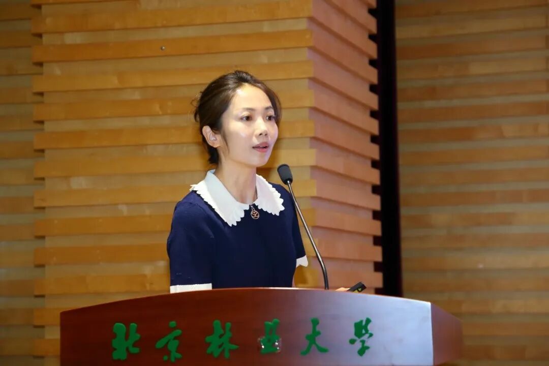 導(dǎo)師代表北京花鄉(xiāng)花木集團(tuán)有限公司董事長(zhǎng)林巧玲代表校外導(dǎo)師對(duì)北京林業(yè)大學(xué)給予的關(guān)注和厚愛表示感謝,對(duì)新生表示衷心祝賀。她表示作為校外導(dǎo)師會(huì)盡自己所能分享自己工作、實(shí)踐中的案例經(jīng)驗(yàn)和心得體會(huì),給大家更多的幫助和啟發(fā)。林董事長(zhǎng)分享了自身所在的園林花卉行業(yè)面臨的新的機(jī)遇和挑戰(zhàn),并邀請(qǐng)同學(xué)和老師參與到花鄉(xiāng)項(xiàng)目中。她希望在今日流霞之秋,我攜著繁花之夢(mèng),你帶著求道之心,攜手并進(jìn),理想共達(dá)。