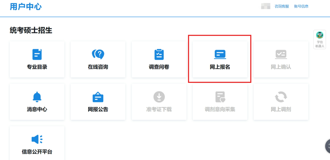 A2: 用學(xué)信網(wǎng)賬號登錄“中國研究生招生信息網(wǎng)”(https://yz.chsi.com.cn/)進(jìn)行報名。