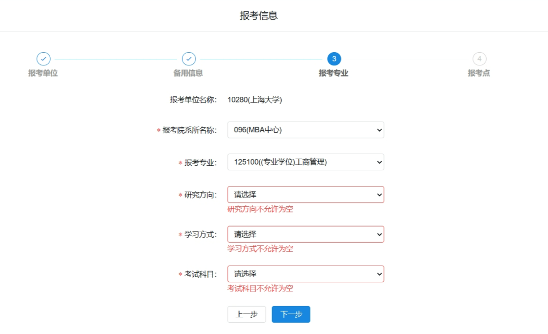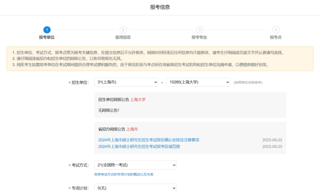 報考單位請選擇“10280上海大學(xué)”