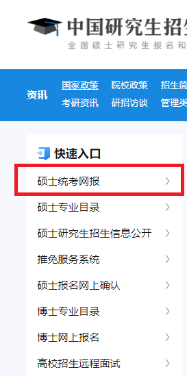 1、打開研招網(wǎng)(https://yz.chsi.com.cn/)首頁后,點(diǎn)擊左側(cè)碩士統(tǒng)考網(wǎng)報。