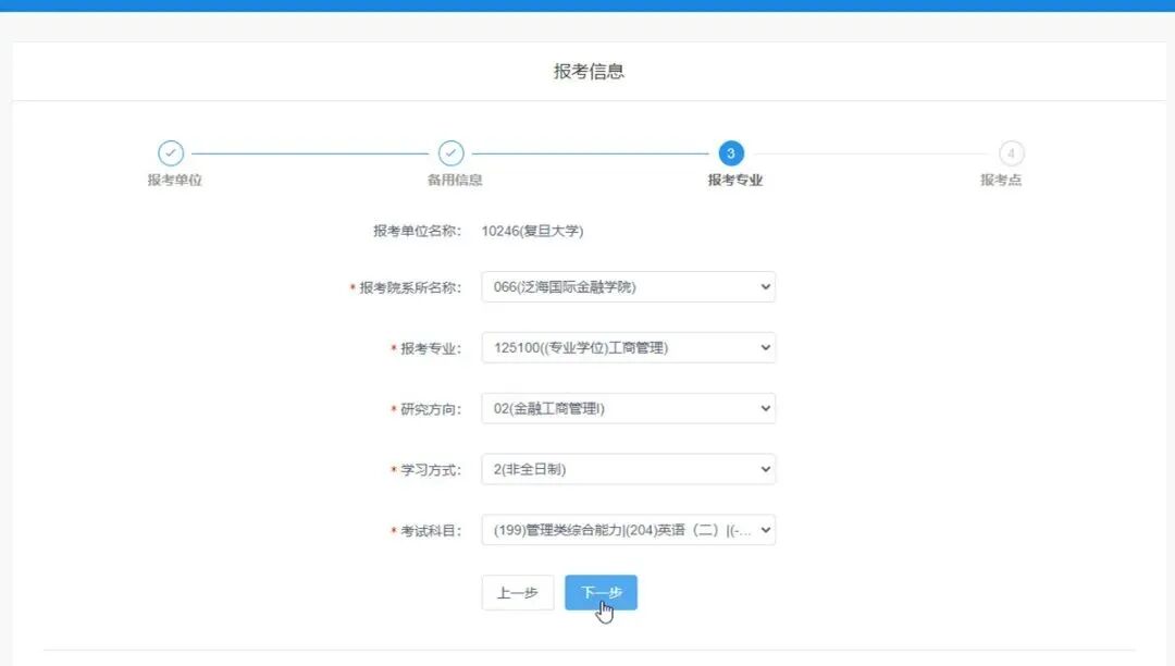 ▲注:以上圖示為在職制金融MBA(FMBA PT+)考生所填界面,僅供參考。