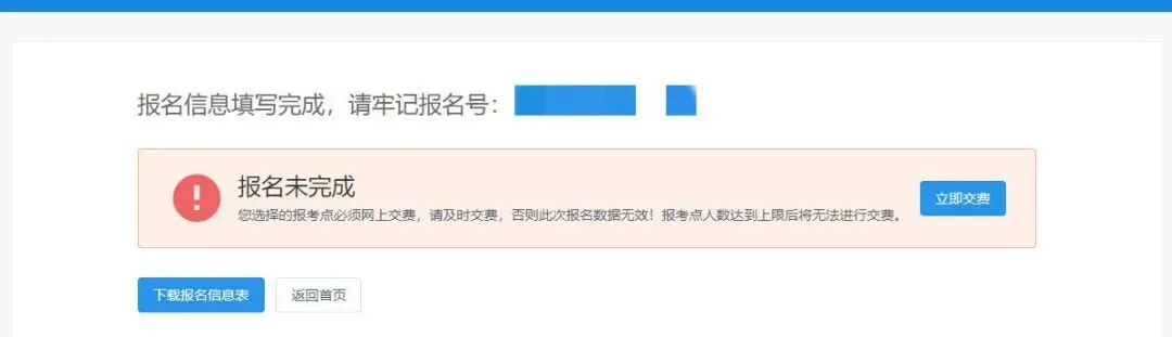 生成報(bào)名號(hào)后本次報(bào)名才為成功;如果選擇的報(bào)考點(diǎn)采取網(wǎng)上交費(fèi),交費(fèi)成功后才算報(bào)名成功。