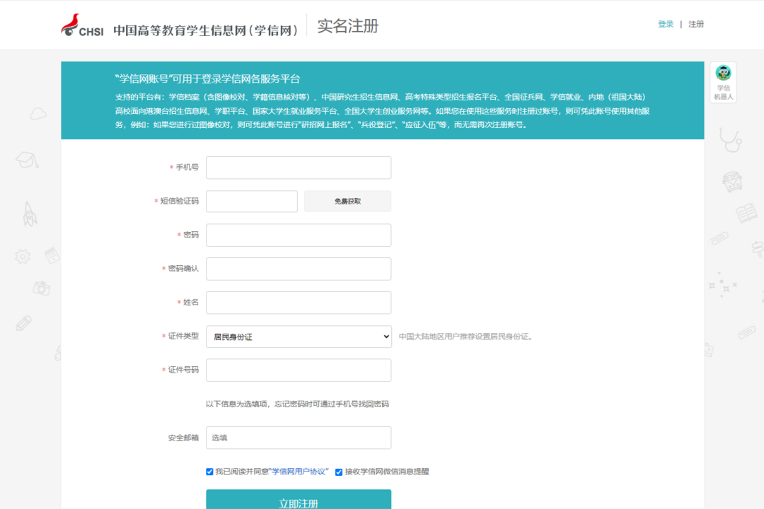 未注冊(cè)過賬號(hào)的考生需注冊(cè)學(xué)信網(wǎng)賬號(hào)后再登陸;