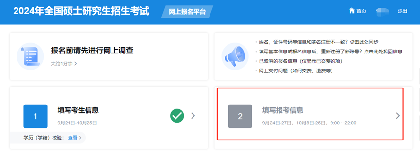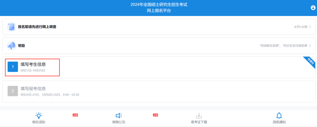 研招統(tǒng)考網(wǎng)報(bào)共分為“填寫考生信息”和“填寫報(bào)考信息”兩部分。