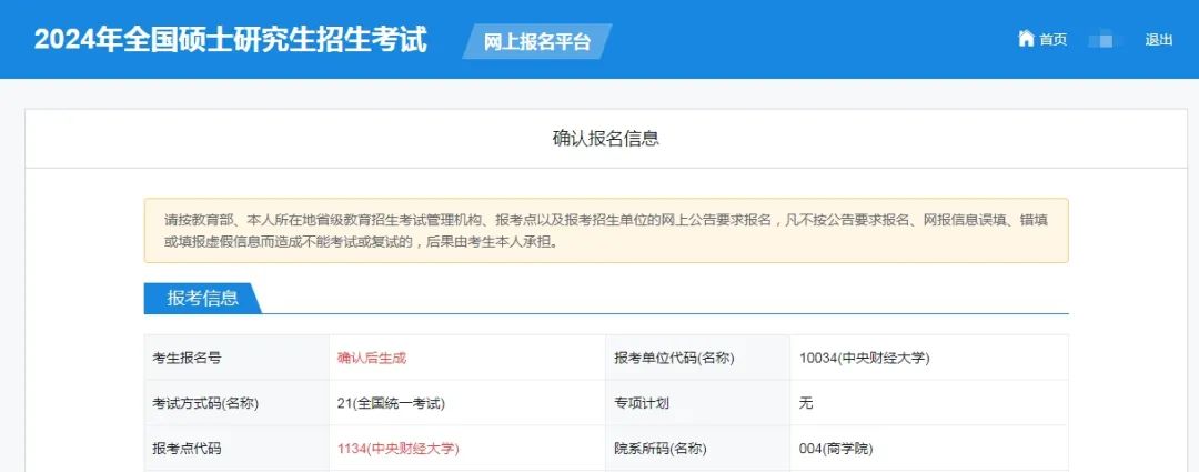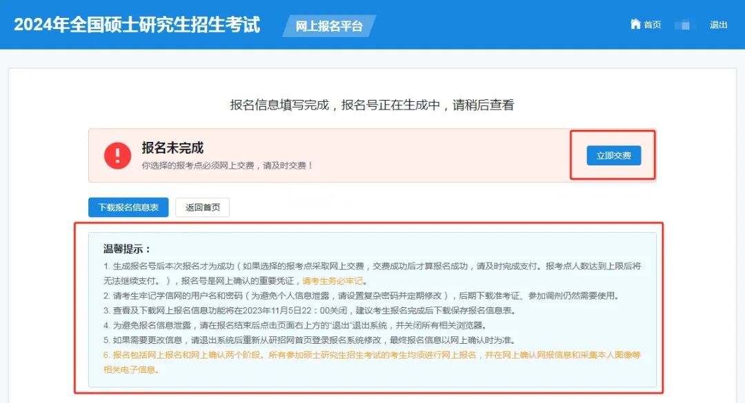 生成報名號且交費成功后本次報名才為成功,報名號是網(wǎng)上確認(rèn)的重要憑證,請考生務(wù)必牢記。