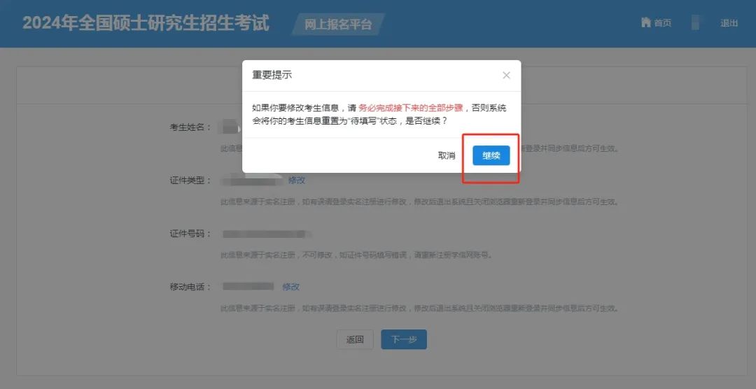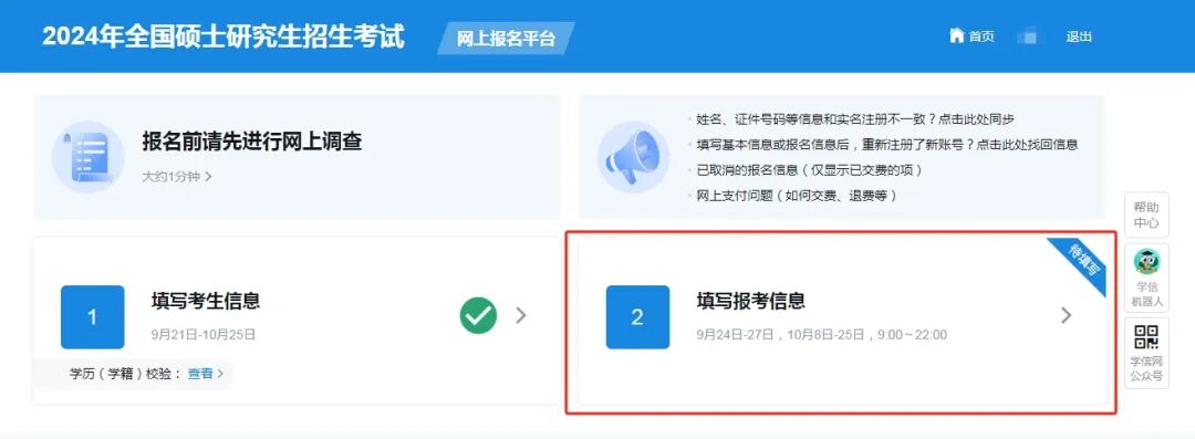 1. 生成報名號后,報考點、招生單位、考試方式等不可修改,考生在選擇過程中需慎重操作。如報名成功后,確實需更改,請先取消已填寫志愿,重新填報。截止2023年10月25日統(tǒng)考網(wǎng)報結(jié)束前取消報名的、由于系統(tǒng)或者網(wǎng)絡(luò)原因造成的同一訂單號(或報名號)重復(fù)支付的,由研招網(wǎng)統(tǒng)一安排退費。