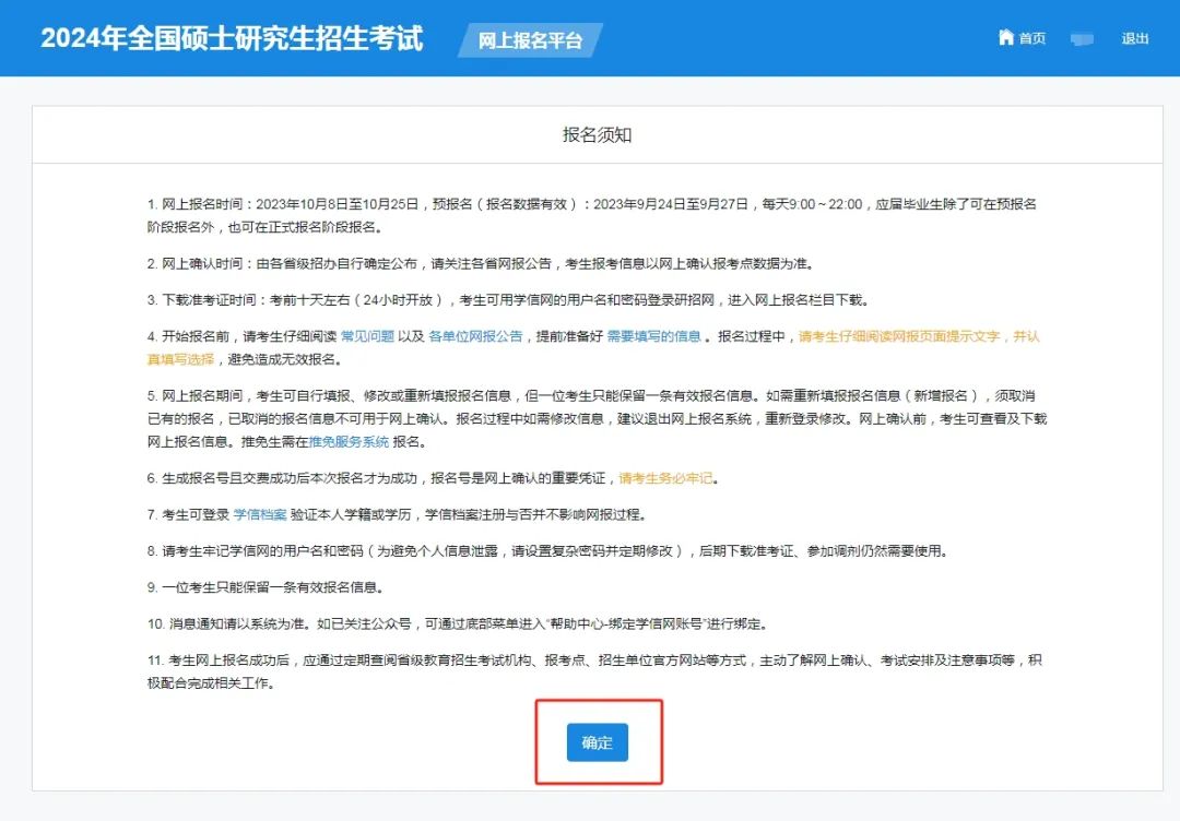 所有統(tǒng)考考生均須按照個人選擇的報考點通知公告要求持相關(guān)材料,在規(guī)定的時間內(nèi)確認(rèn)研招網(wǎng)報名信息,同時采集本人圖像等相關(guān)電子信息。未按照要求完成報名資格確認(rèn)的,報名無效。