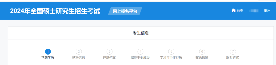 9.學歷校驗通過后,依次填寫基本信息、戶籍檔案、家庭主要成員、學習與工作經歷、獎懲情況及聯(lián)系方式。