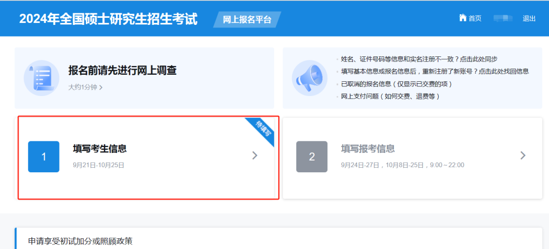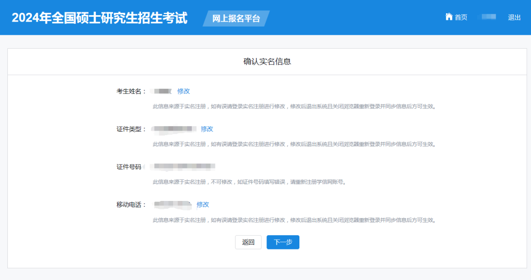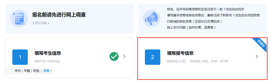 注意:招生單位、考試方式、報考點關鍵信息不允許修改,若填寫錯誤,只能取消報名信息后,再新增一份新的報名信息。