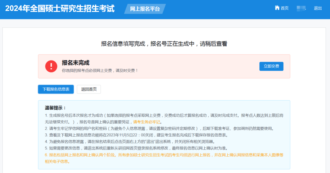 查看及下載網(wǎng)上報名信息功能將在2023年11月5日22:00關閉,建議考生報名完成后下載保存報名信息表。且考生未按要求,錯選報考點、報考單位、考試方式等,需在網(wǎng)上報名截止時間前重新報名,并按省級管理部門要求交費,逾期亦不再補報。