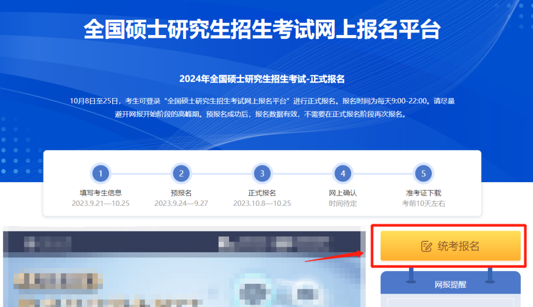 各位考生請注意,2024年研招統(tǒng)考預報名即將開始,填寫報考信息功能開通,報名時間為:10月8日-25日每天9:00-22:00。