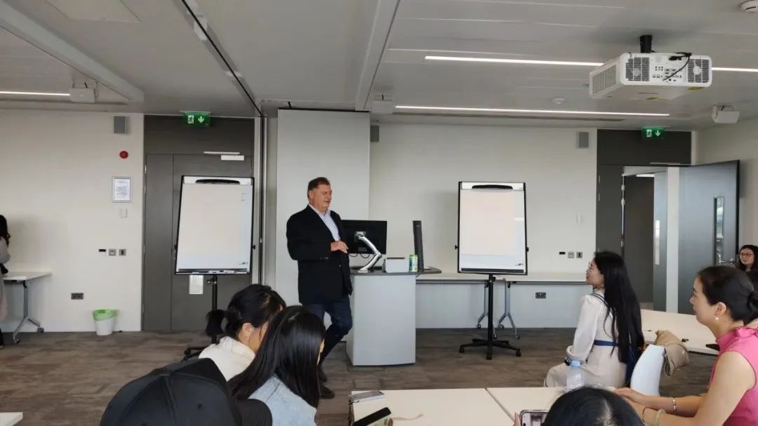 同學(xué)們與圣三一大學(xué)商學(xué)院執(zhí)行院長Michael Flynn教授進(jìn)行了深入交流。Michael Flynn教授就國際商務(wù)、外國投資以及愛爾蘭都柏林經(jīng)濟(jì)生態(tài)系統(tǒng)等進(jìn)行了交流和介紹。愛爾蘭的教育環(huán)境、政治中立和稅收優(yōu)勢,使愛爾蘭成為歐洲最受外商投資的目的地之一。同時受人口和市場的限制,創(chuàng)新和轉(zhuǎn)型是愛爾蘭賴以生存的根本。Michael Flynn教授的講述深入淺出,既有理論的深度,又有實踐的生動,讓同學(xué)們對愛爾蘭復(fù)雜的商業(yè)與經(jīng)濟(jì)體系有了更深入的理解。