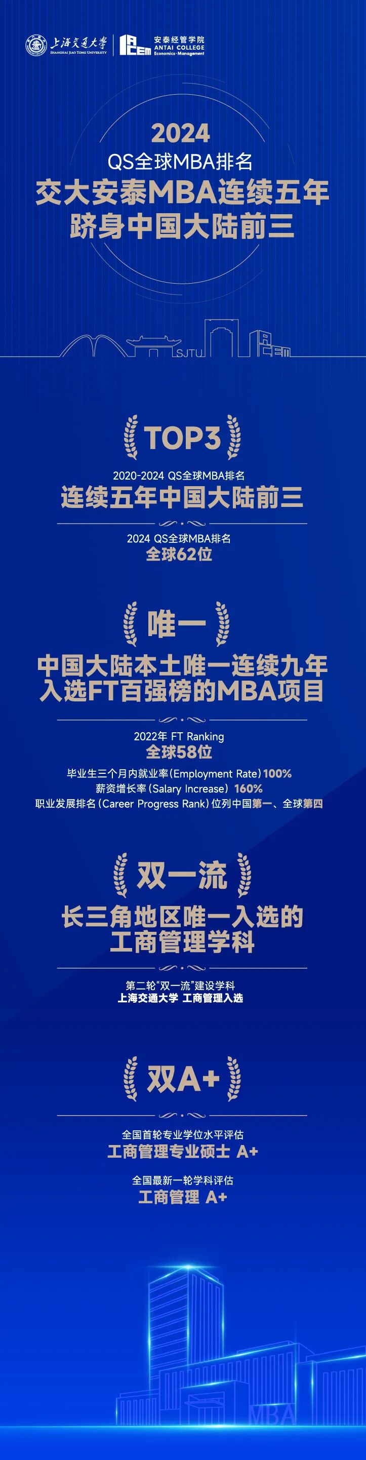 就業(yè)率滿分封頂!ROI高出全球平均分28.8分!2024 QS全球MBA排名交大安泰連續(xù)五年躋身大陸三甲!