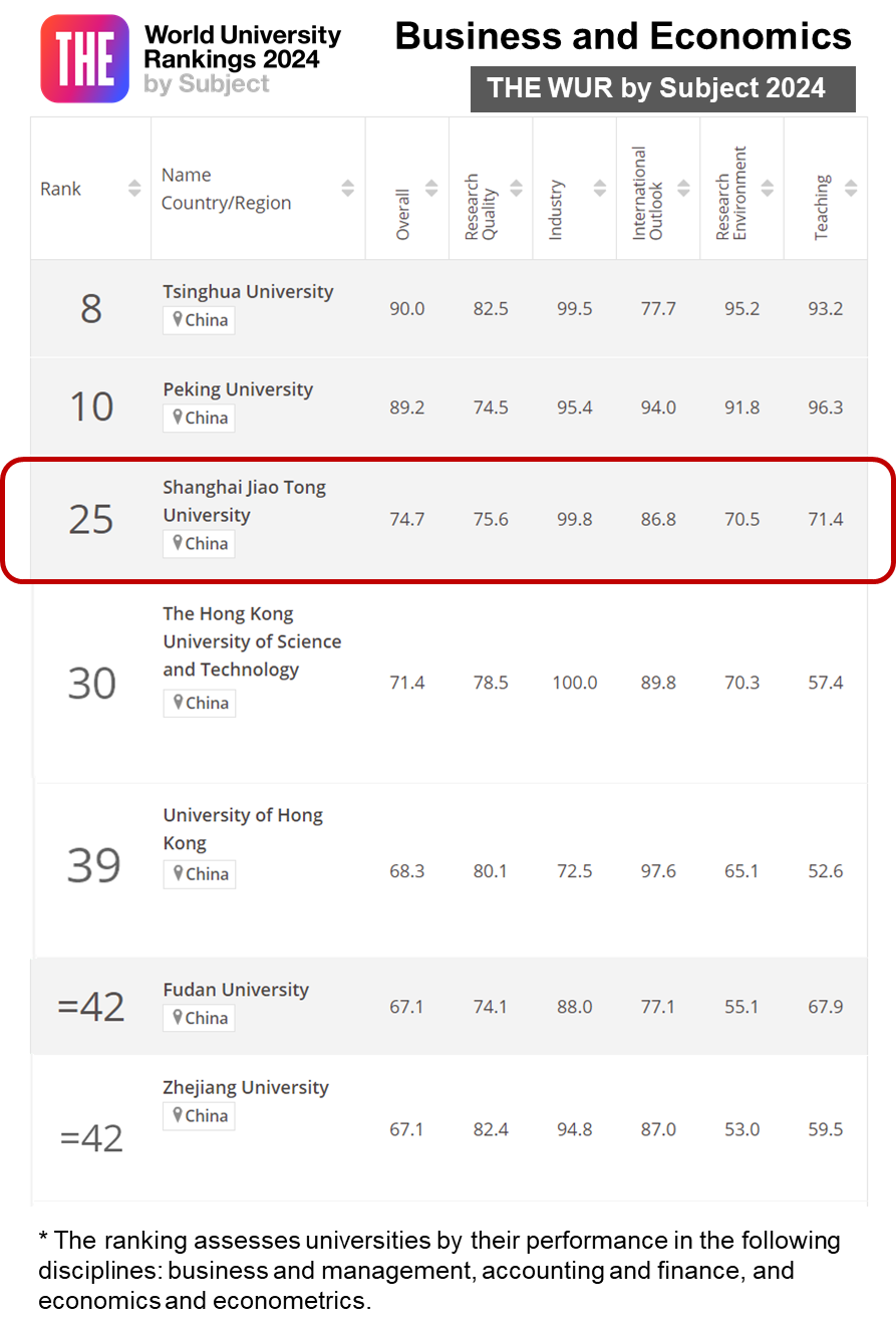 2024年泰晤士高等教育THE學(xué)科排名公布,上海交大經(jīng)管類學(xué)科表現(xiàn)優(yōu)異