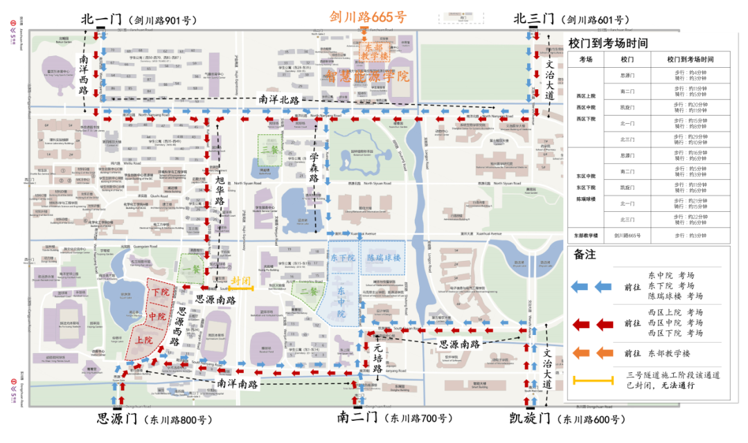 3、建議各位考生根據(jù)考場位置選擇通行校門,具體路線請見下文。