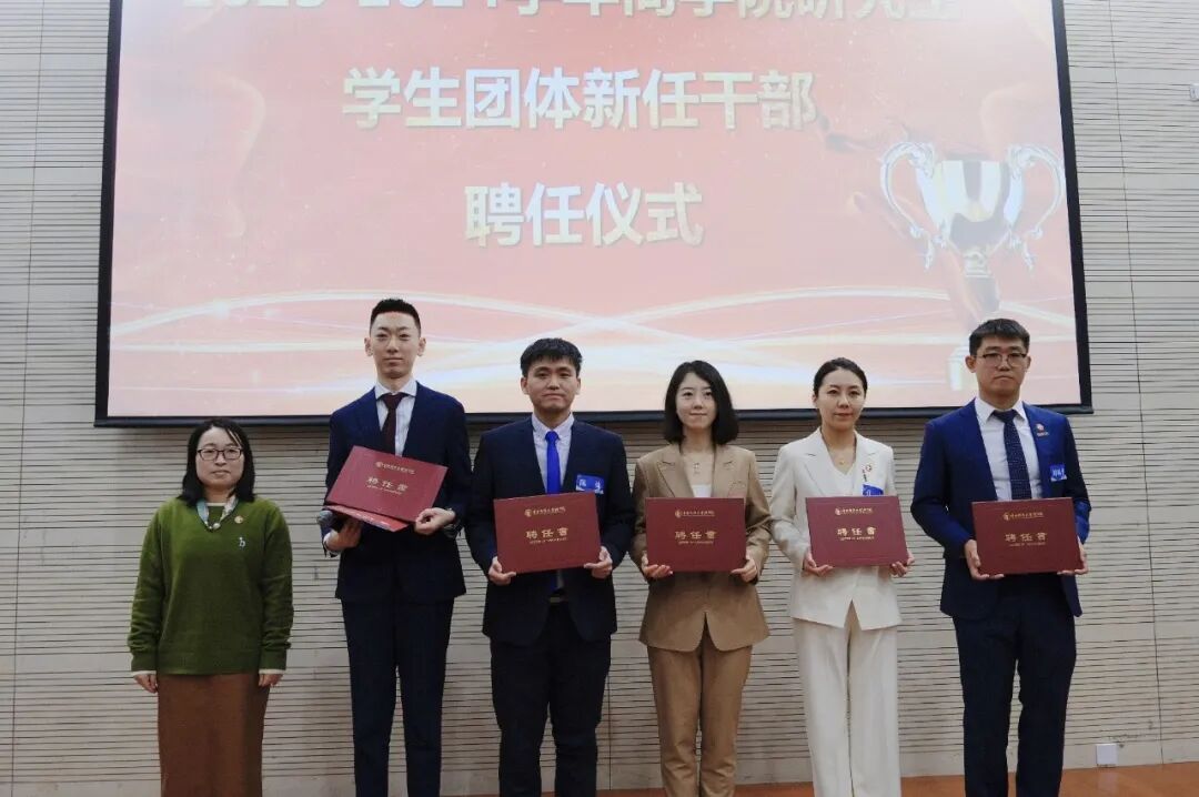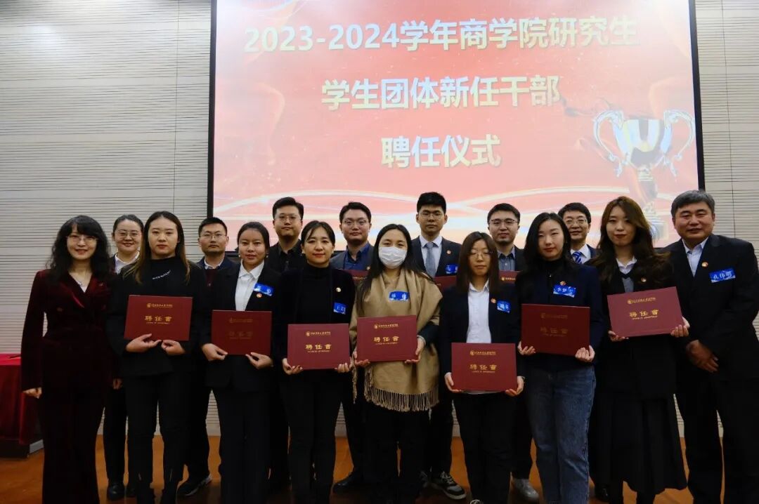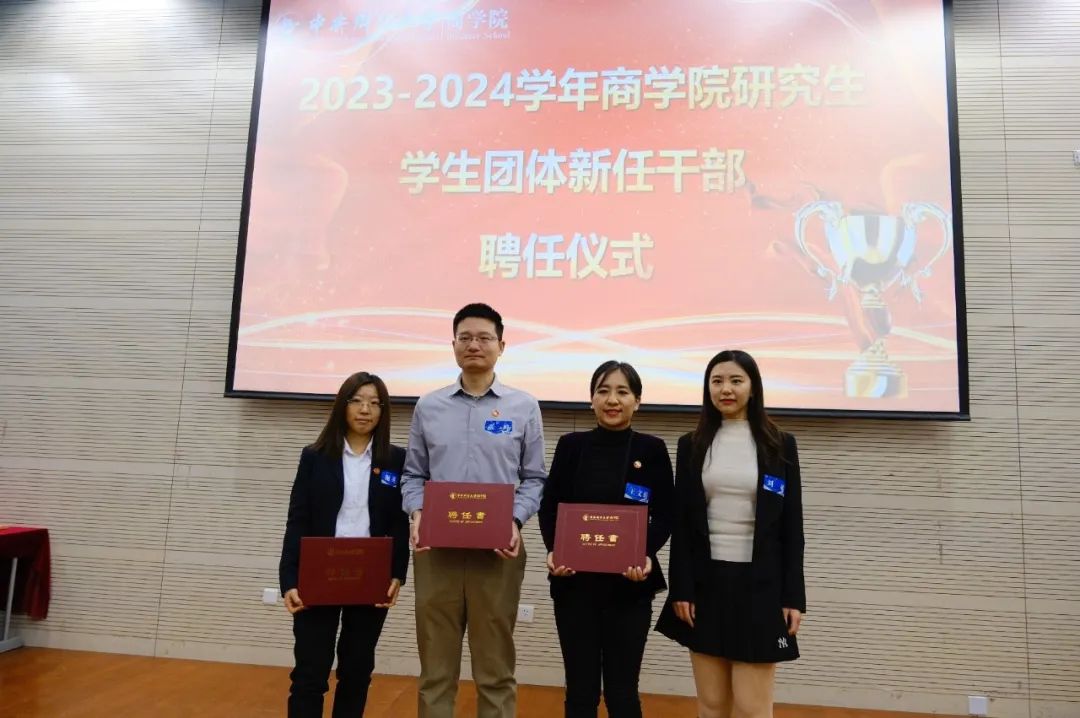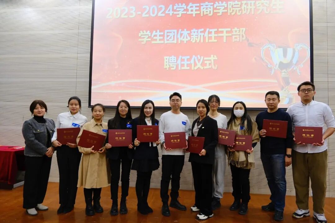 大會上,商學(xué)院黨委書記李躍新、副書記楊中英、MBA教育中心副主任兼商學(xué)院副院長朱飛、出席會議的各位老師以及各學(xué)生團體負責(zé)人為2023-2024學(xué)年商學(xué)院研究生學(xué)生團體新任干部頒發(fā)了聘書。