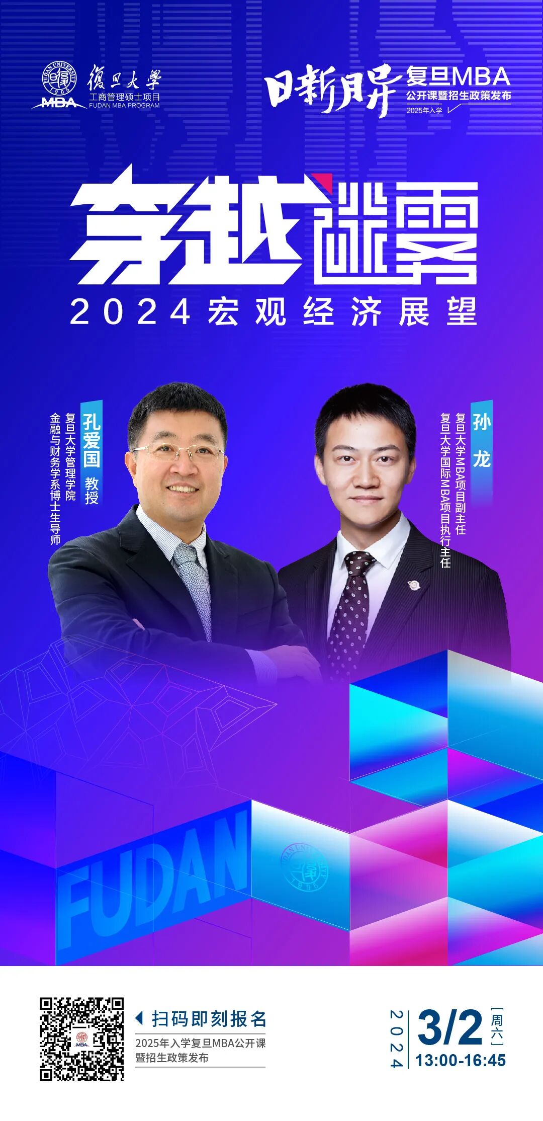 本次公開課復(fù)旦MBA項(xiàng)目特邀復(fù)旦大學(xué)管理學(xué)院金融與財(cái)務(wù)學(xué)系孔愛國(guó)教授開啟主題為“穿越迷霧,2024宏觀經(jīng)濟(jì)展望”的公開課,帶領(lǐng)大家一起去探討。