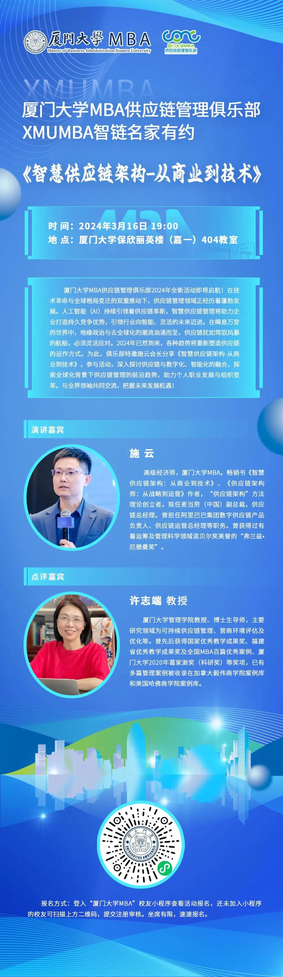 廈大MBA|活動(dòng)報(bào)名:智慧供應(yīng)鏈架構(gòu)-從商業(yè)到技術(shù)