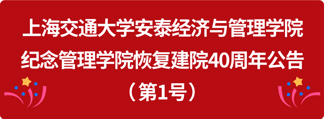 交大安泰經(jīng)管學(xué)院紀(jì)念管理學(xué)院恢復(fù)建院40周年公告(第1號(hào))