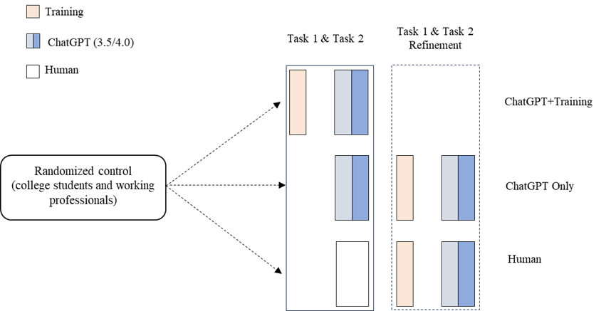 近期由清華大學(xué)經(jīng)濟(jì)管理學(xué)院李寧教授團(tuán)隊(duì)進(jìn)行的一項(xiàng)研究進(jìn)一步揭示了人機(jī)合作及其對(duì)知識(shí)員工工作績(jī)效影響的更多細(xì)節(jié)。該研究通過(guò)2個(gè)隨機(jī)對(duì)照試驗(yàn),涵蓋了近500名實(shí)驗(yàn)參與者。