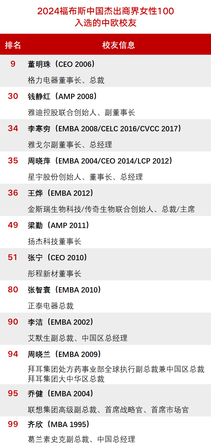 喜報(bào)!12位中歐校友登榜2024“福布斯中國杰出商界女性100”