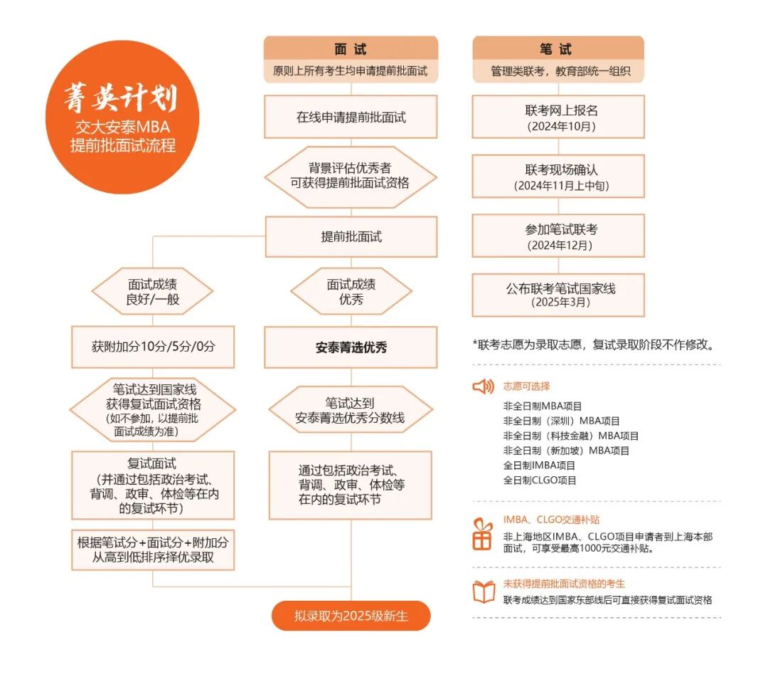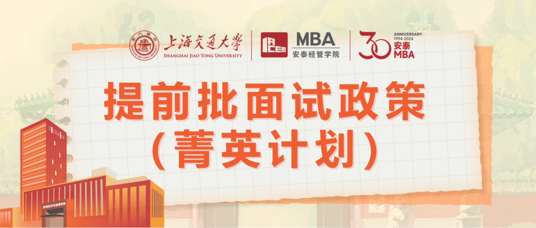 25招生 | 2025年入學(xué)交大安泰MBA提前批面試政策(菁英計劃)