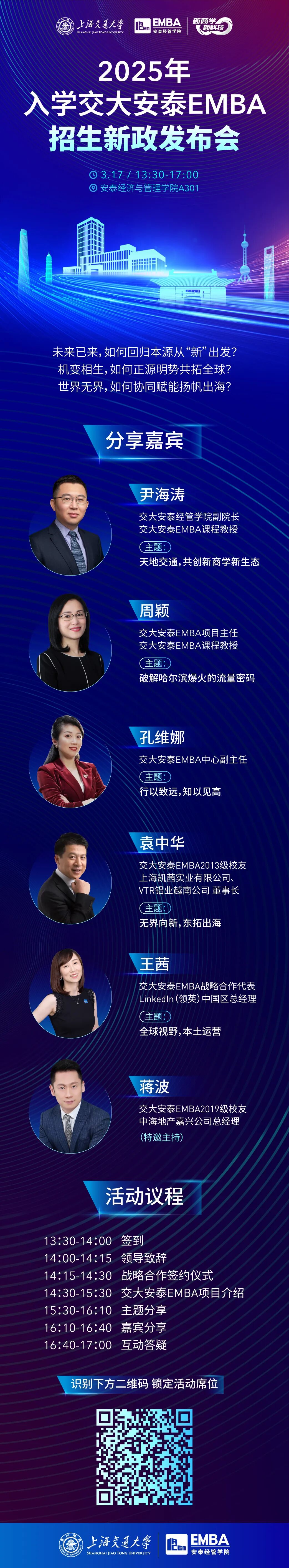 3月17日交大安泰EMBA招生新政發(fā)布會