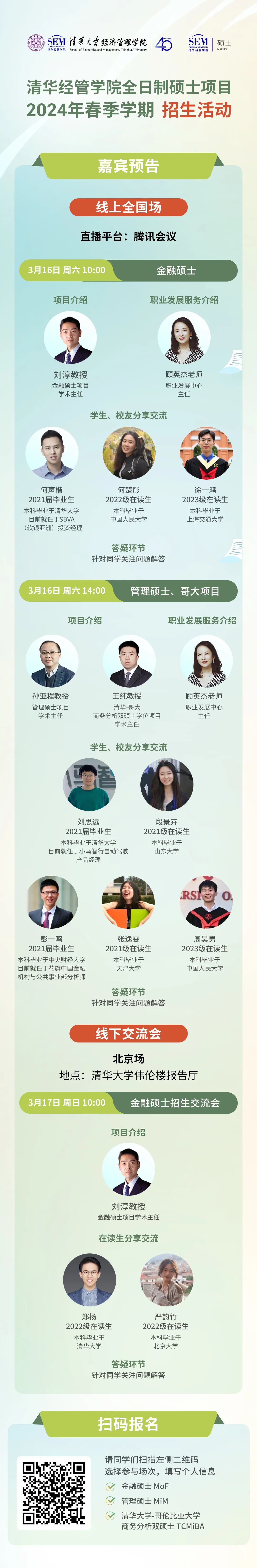 邀你參加丨清華經(jīng)管學(xué)院全日制碩士項(xiàng)目招生宣講來(lái)了