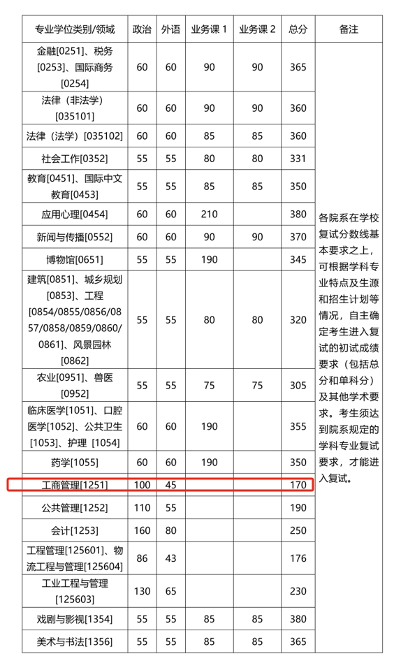 工商管理[1251]、公共管理[1252]:初試成績(jī)適用國(guó)家A線(xiàn)考生的復(fù)試要求參見(jiàn)報(bào)考院系相關(guān)規(guī)定。