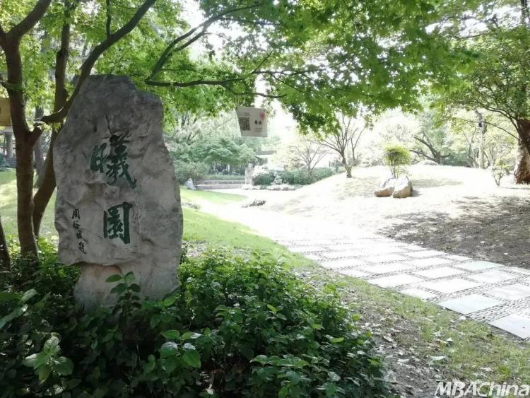 靠近復(fù)旦正門(mén),有一方幽靜的天地。亭臺(tái)樓閣,花園小徑,踏過(guò)鵝卵石鋪地,看池塘里的金魚(yú)。