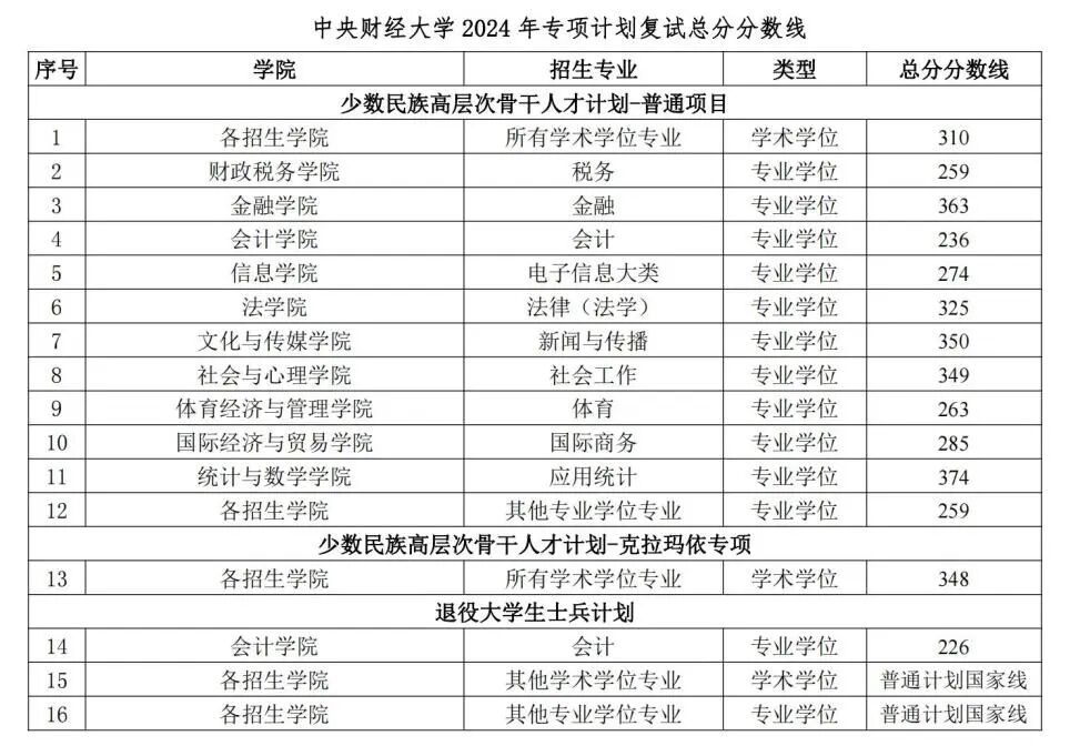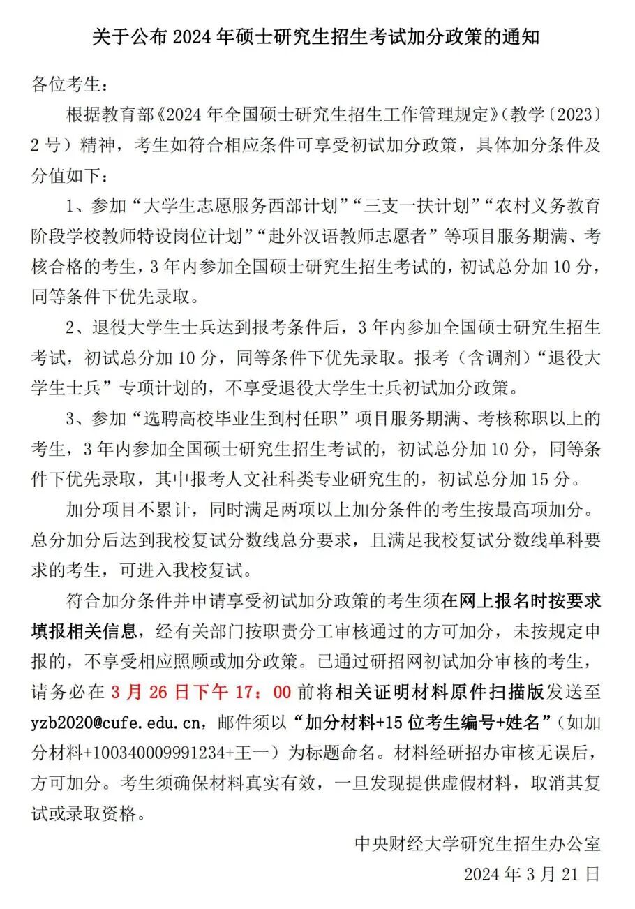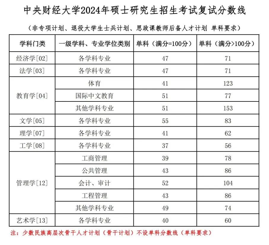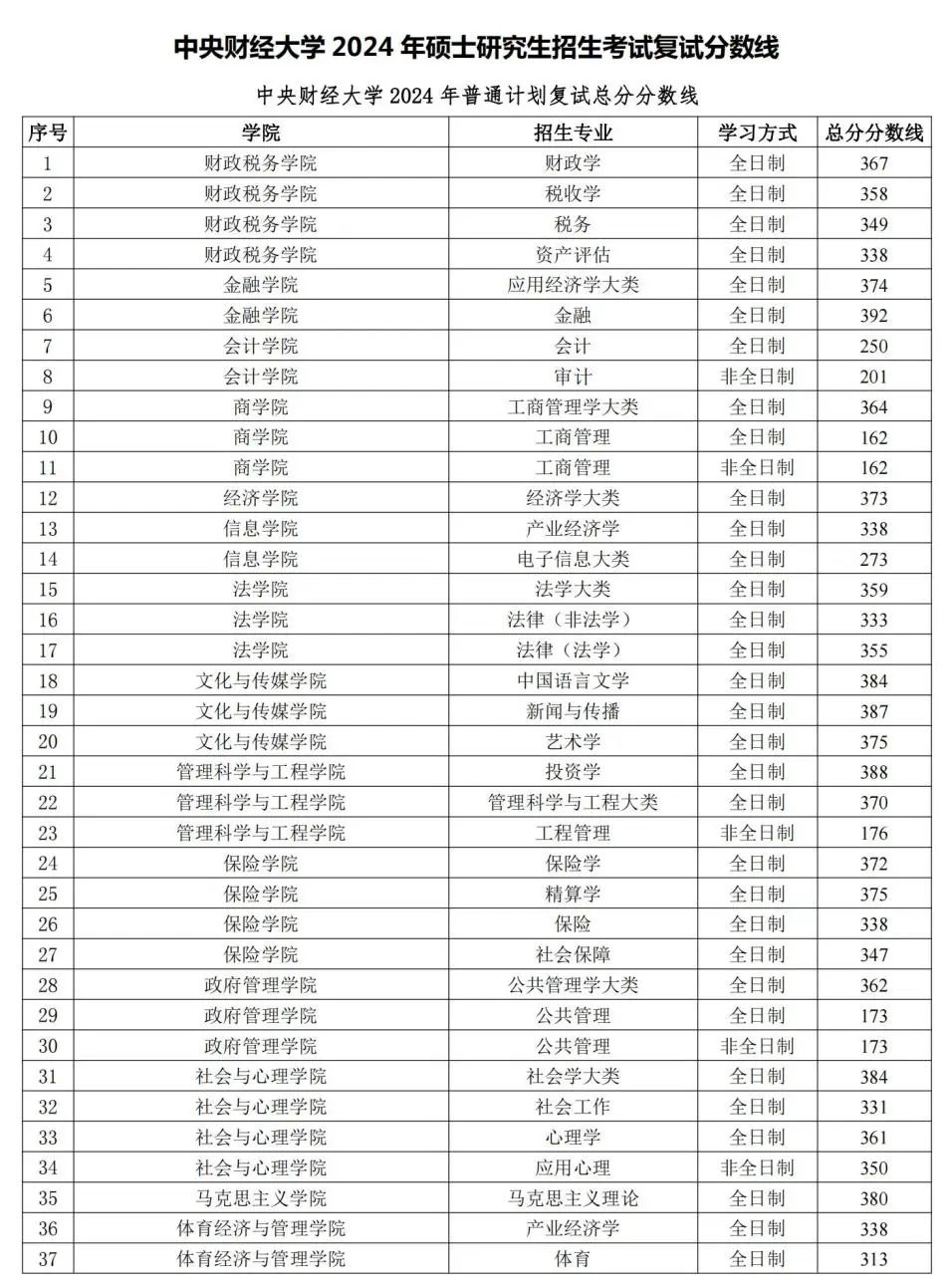 中央財經(jīng)大學關于公布2024年碩士研究生招生考試復試分數(shù)線的通知