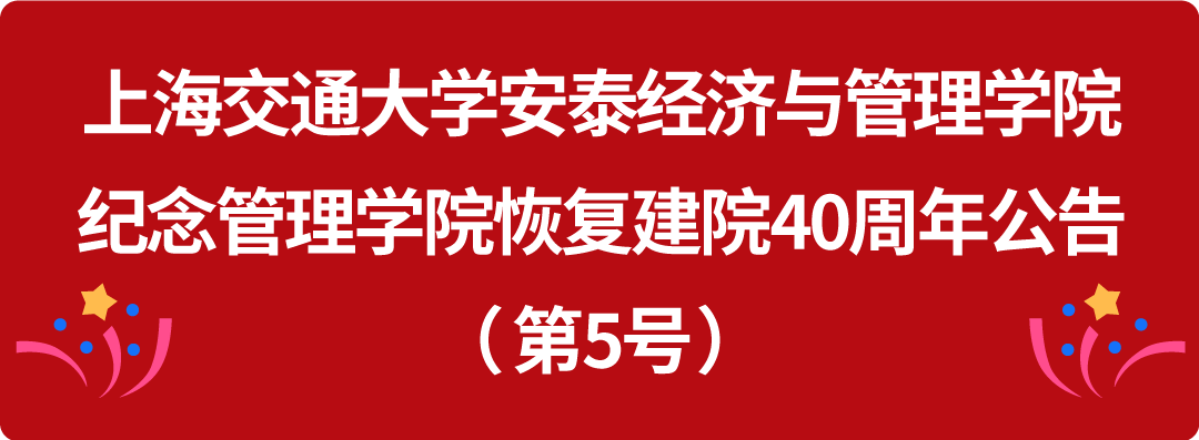 交大安泰經(jīng)管學(xué)院紀(jì)念管理學(xué)院恢復(fù)建院40周年公告(第5號(hào))