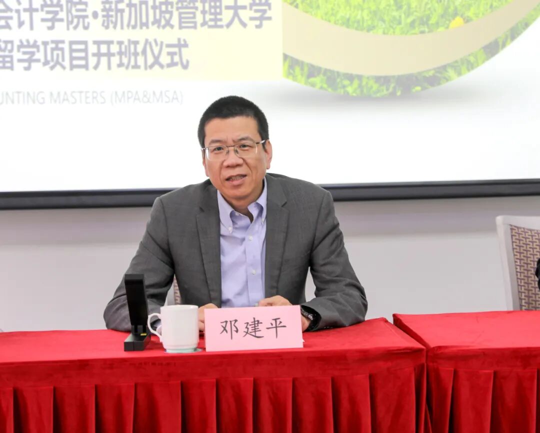 4月9日,學院舉行2024年廈門國家會計學院·新加坡管理大學會計碩士留學項目開班儀式。廈門國家會計學院黨委委員、副院長鄧建平教授,新加坡管理大學會計學院會計聯(lián)席主任Prasart教授(線上),廈門國家會計學院研究生處副處長楊熠副教授出席此次開班儀式。