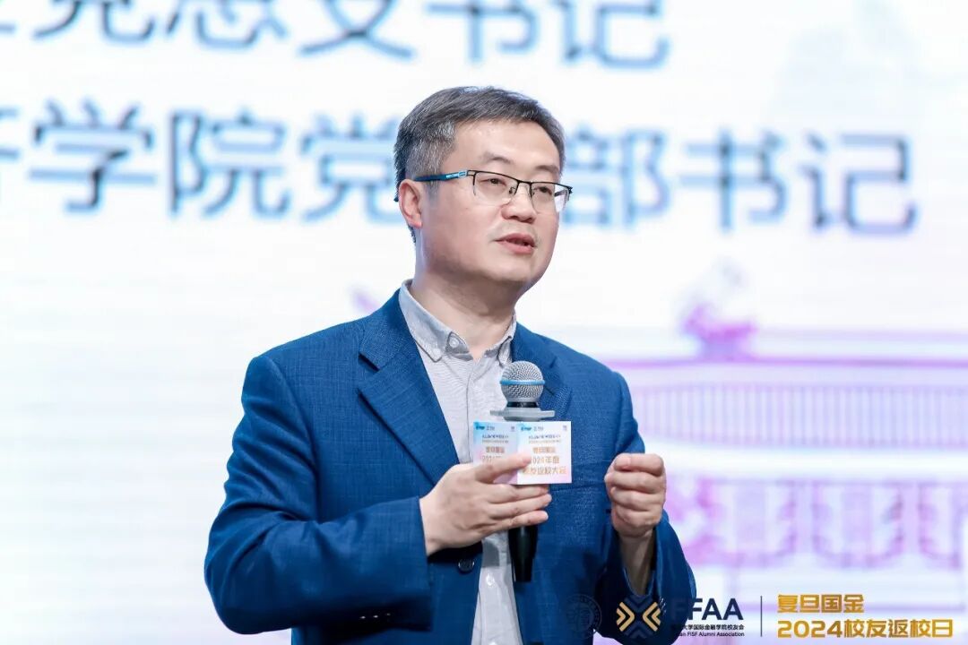 大會伊始,學(xué)院執(zhí)行院長錢軍教授發(fā)表歡迎致辭,從“復(fù)旦國金同心·卓越責(zé)任創(chuàng)新”的新院訓(xùn)出發(fā),與諸位校友及嘉賓回憶國金七載時光,展望學(xué)院未來征程。隨著學(xué)院新家聿成,學(xué)院期待與各位校友攜手筑夢,在發(fā)展新征程創(chuàng)造新輝煌。