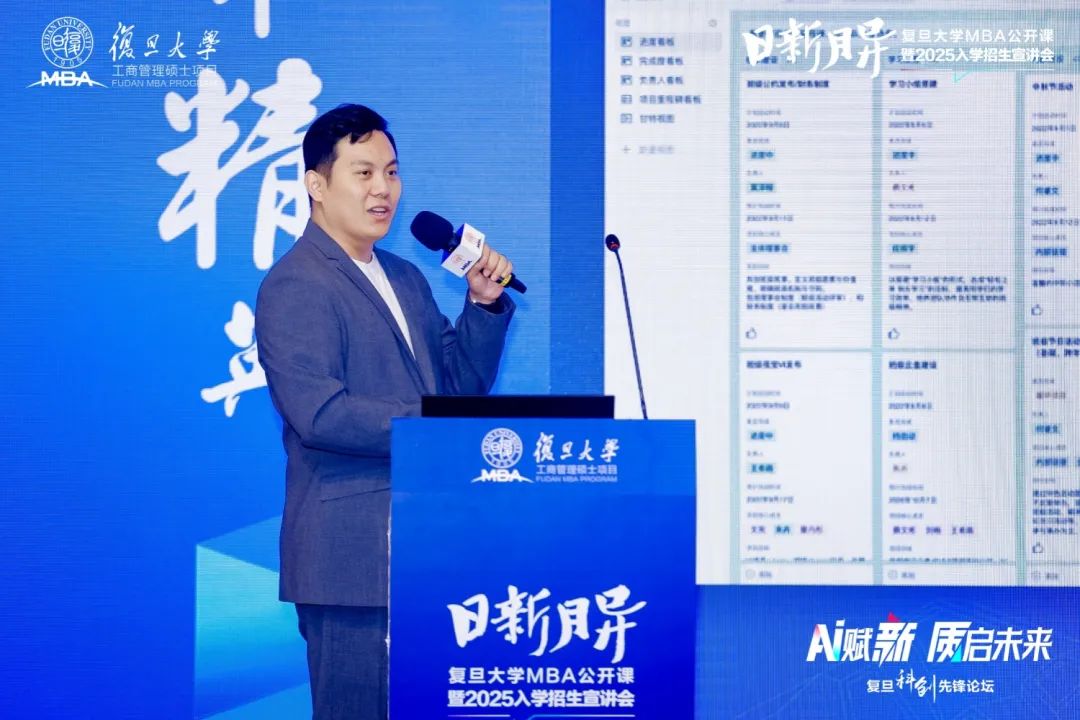 5月25日,復(fù)旦大學(xué)MBA舉辦“AI賦新·質(zhì)啟未來”主題公開課暨2025入學(xué)招生宣講會(huì)。懷揣夢(mèng)想的有志青年齊聚復(fù)旦,在AI的全新視角里,感悟課堂的魅力,了解復(fù)旦MBA的獨(dú)特培養(yǎng)體系與招生政策。
