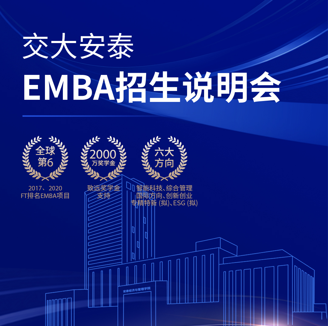 2024年6月27日(周四)晚19:00,交大安泰EMBA招生說明會,與您面對面,共同探討EMBA學習生活,為您的報考答疑解惑。