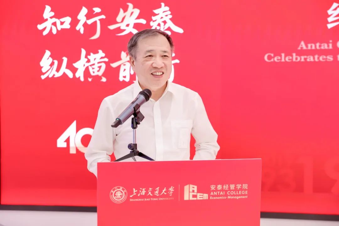 楊振斌向安泰經管學院全體師生員工和廣大校友表示熱烈祝賀,向長期關心支持學院發(fā)展的各界人士表示衷心感謝。楊振斌指出,安泰經管學院歷史源遠流長,恢復建院40年來,人才培養(yǎng)、學科建設、學術研究、決策咨詢、國際交流等均取得可喜成績,為學?!半p一流”建設和中國商科教育走向世界作出重要貢獻。希望學院銘記歷史、總結經驗,凝練薪火相傳的安泰文化;加強宣傳、做好引導,傳承不斷奮進的精神血脈;鑒往知來、繼往開來,書寫改革發(fā)展的全新篇章;團結一心、乘勢而上,堅定不移朝著扎根中國的世界級商學院目標邁進,為交大早日邁入世界一流大學前列,為以中國式現(xiàn)代化全面推進強國建設、民族復興偉業(yè)作出新的更大貢獻。