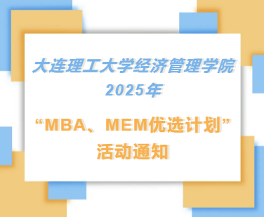 25招生 | 大連理工大學經濟管理學院2025年“MBA、MEM優(yōu)選計劃”活動通知