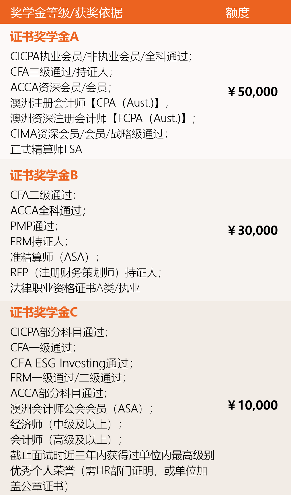 該項獎學(xué)金用以鼓勵考生在專業(yè)領(lǐng)域取得的優(yōu)異成績;ABC三個等級就高不兼得。