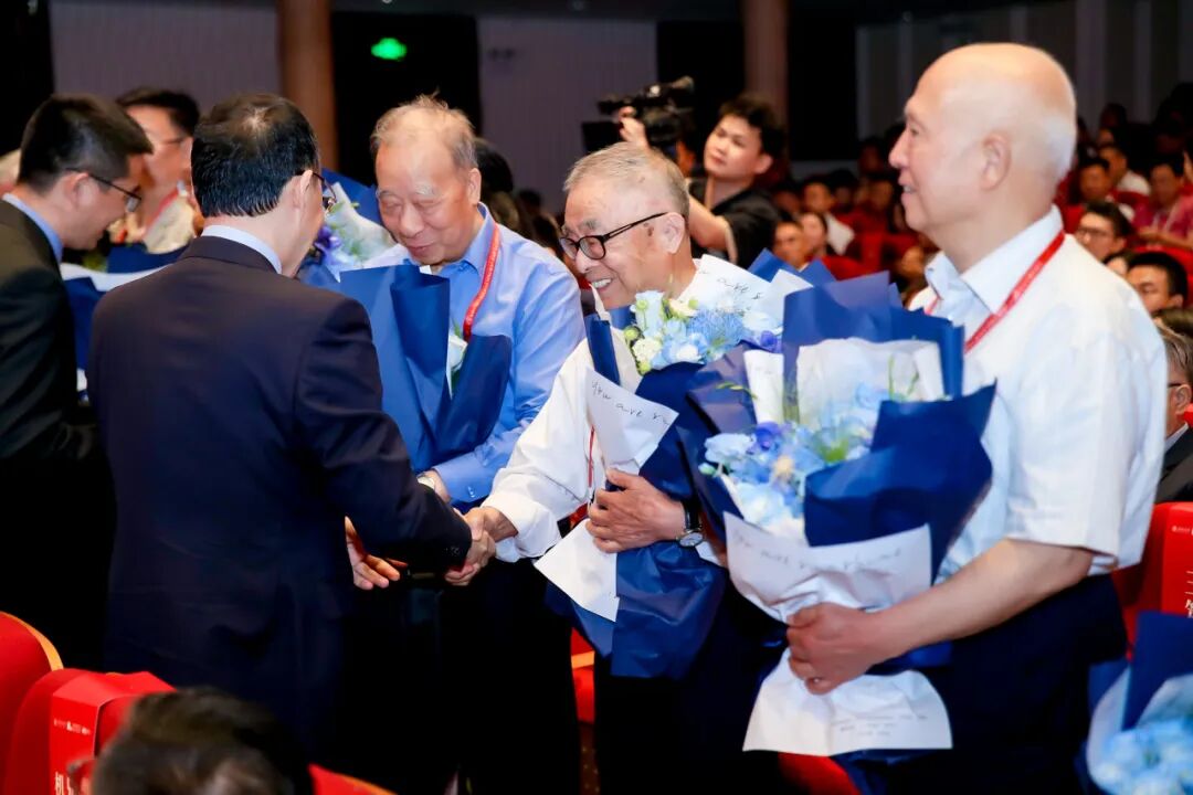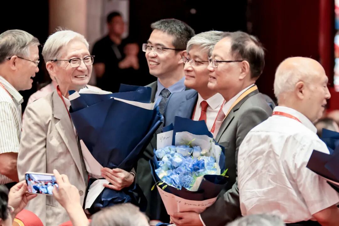 在溫馨感人的氛圍中,大會進(jìn)入“四秩桃李 感念師恩”獻(xiàn)花儀式環(huán)節(jié),師生和校友代表向10余位現(xiàn)場出席大會的學(xué)院退休老教師獻(xiàn)上鮮花,感恩他們長期以來為學(xué)院發(fā)展建設(shè)作出的重要貢獻(xiàn),表達(dá)對他們辛勤付出和無私奉獻(xiàn)的深深敬意,祝福老教師們健康長壽、福樂綿綿,同時希望他們繼續(xù)關(guān)心支持學(xué)院的發(fā)展建設(shè),也希望學(xué)院廣大年輕師生和校友學(xué)習(xí)前輩們的精神、智慧和品格,讓交大安泰人在薪火相傳的道路上彼此照亮。