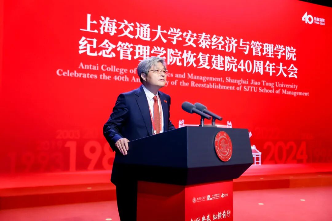 6月15日上午,上海交通大學(xué)安泰經(jīng)濟(jì)與管理學(xué)院紀(jì)念管理學(xué)院恢復(fù)建院40周年大會在徐匯校區(qū)文治堂舉行。